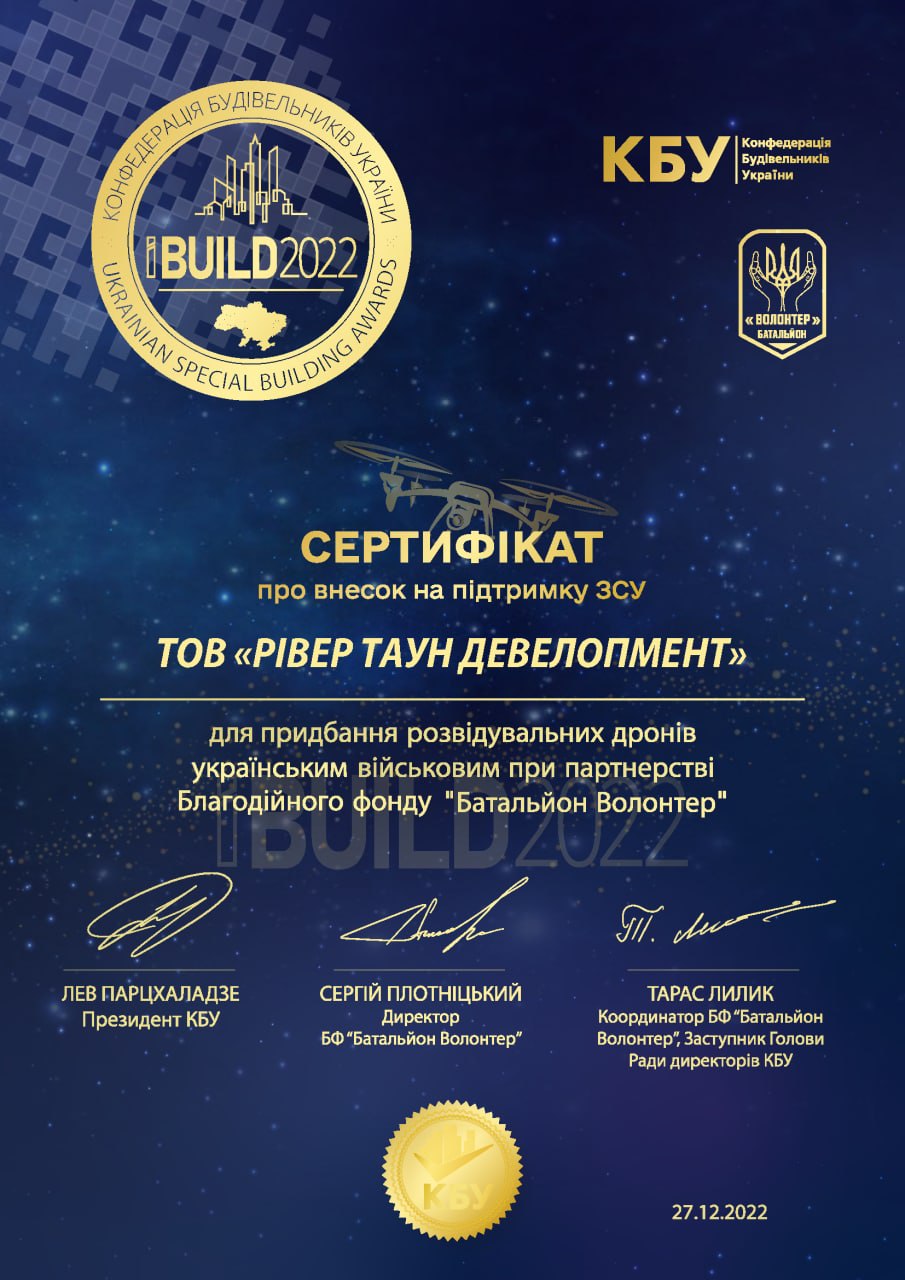 На щорічній Всеукраїнській будівельній премії iBuild ми стали переможцями у номінації «Житловий комплекс незламності 2022»!