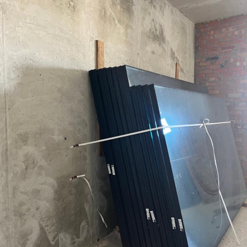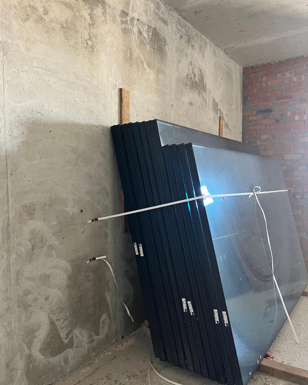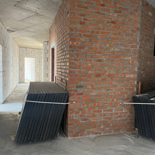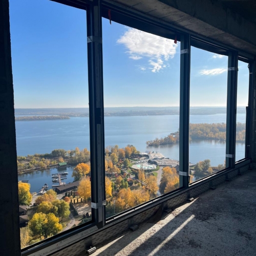 Закуплено та піднято на поверхи 1000 м² склопакетів різних розмірів. Вони вже розміщені на 23–27 поверхах — підготовка до монтажу вікон триває.