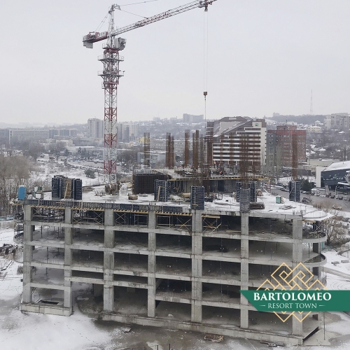 Продовжуємо інформувати вас про активні роботи на будівельному майданчику Bartolomeo Resort Town. Станом на 7 грудня 2019 року будівельники працюють над зведеннням 7 поверху Башні ІІ. Усі роботи ведуться згідно графіку, своєчасно й без жодних затримок. Побачити динаміку та оцінити прогрес ви можете, переглянувши наш щотижневий фото звіт.