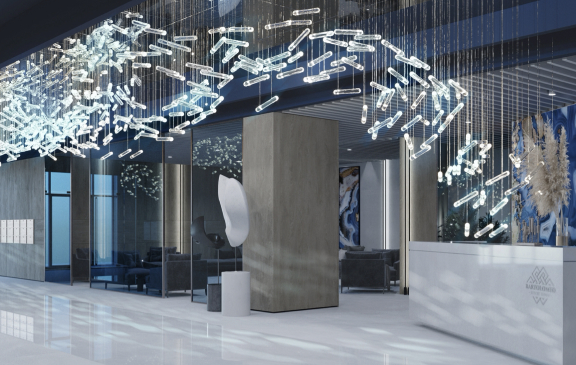 Пропонуємо вашій увазі вишуканий дизайн-проект лобі, що підкреслює преміальний статус нашого житлового комплексу!