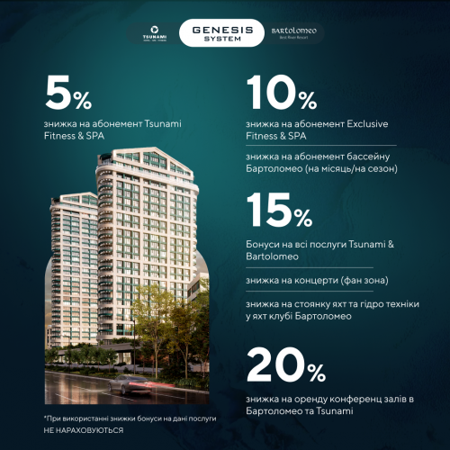Купуючи квартиру, ви автоматично стаєте VIP-гостем Genesis System та отримуєте RESIDENT CARD.
